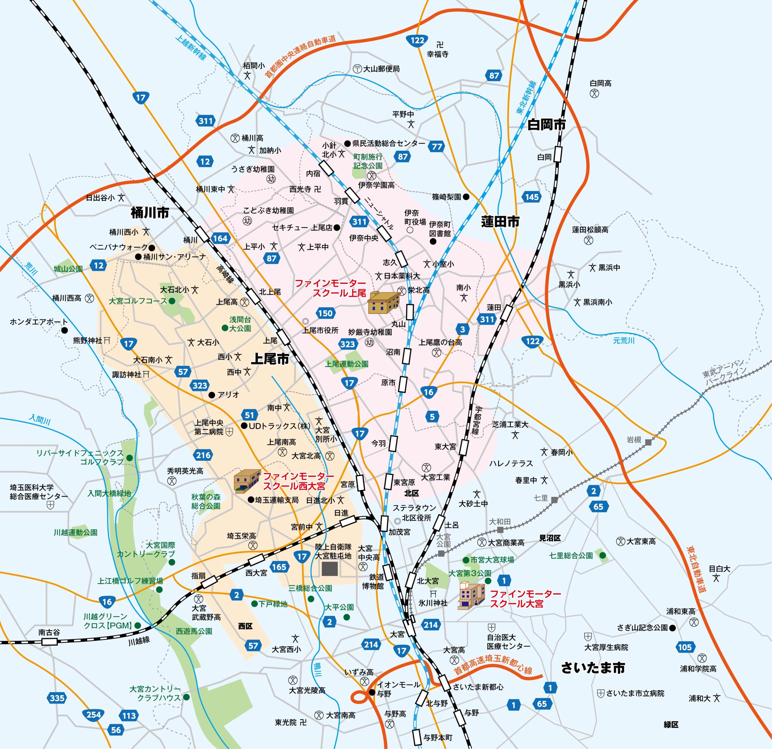 西大宮・日進線JR西大宮駅北口、イオン大宮店、聖学院大学 など