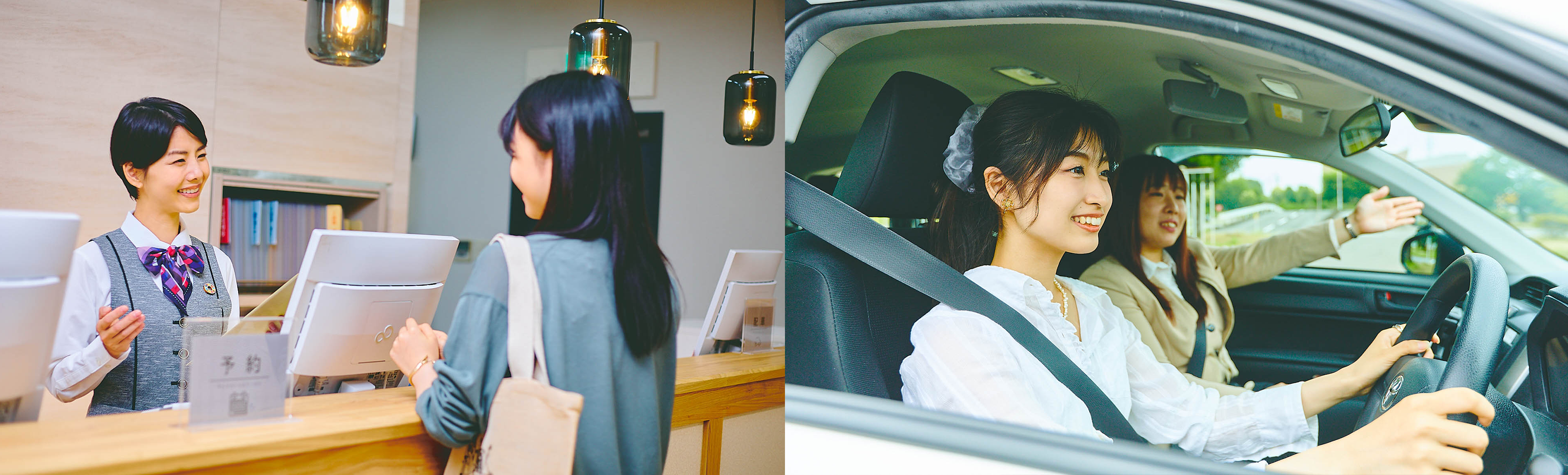 お客さまがスムーズに卒業できるよう、教習予約は窓口スタッフが対面でお取りします(ハッピーホリデーコースの方は電話予約が可能です)。希望のサポーターを伝えたり、教習計画の相談をしたり、なんでもお気軽にご相談ください。