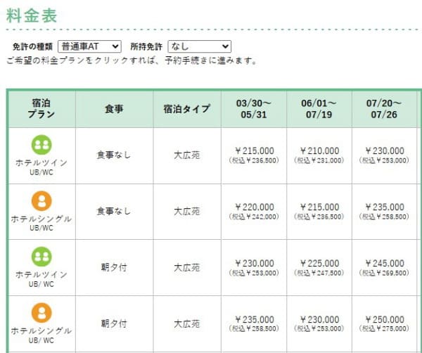 詳しくは各教習所の合宿プランページにてご確認ください。